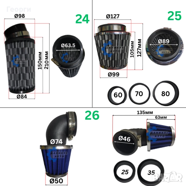 24. Спортен филтър Ф63.5 Ф84 Ф98 210мм - 20,00 лв. ( 10,23 € )