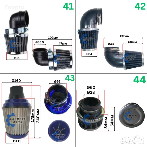 41. Спортен филтър 90 градуса Ф38,5 Ф51 Ф61 107мм - 12,00 лв. ( 6,14 € )