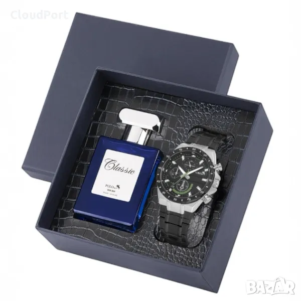Мъжки комплект, 55 мл Парфюм и часовник, Polo Air, Черно → Обява 50393973