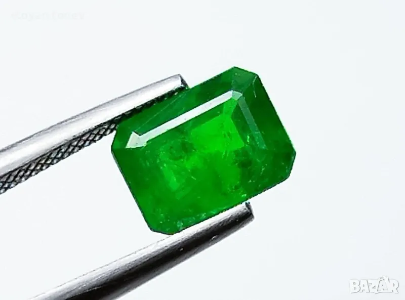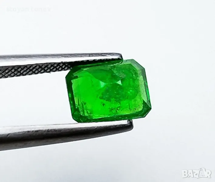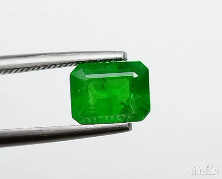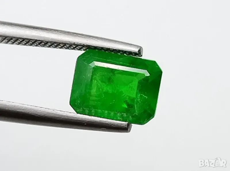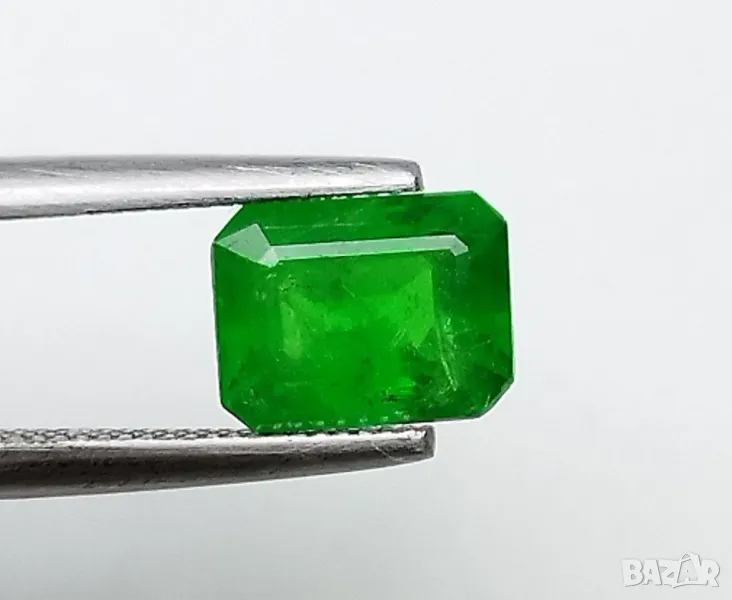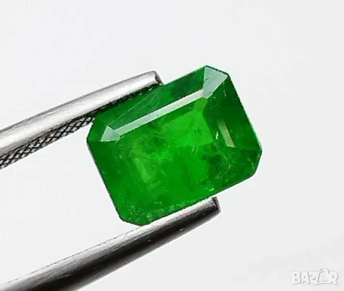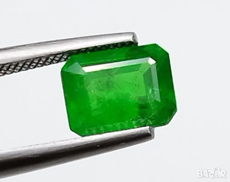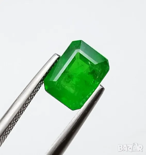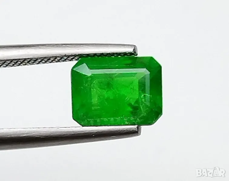 Естествен цаворит с тегло 1.24кт. и произход Танзания. Чистота с хармонично разположени видими включения. Цвета е зелен. Форма емералд кът с размери: 6.7 x 5.1 x 3.7 mm.