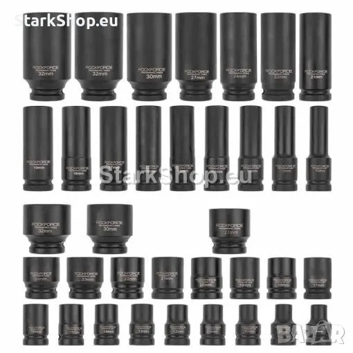 Професионален Комплект Ударни Вложки 1/2″ 35 Части ROCKFORCE от 6-32мм Средни и Дълбоки в Метален Ку → Обява 50394614