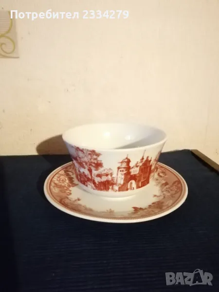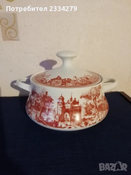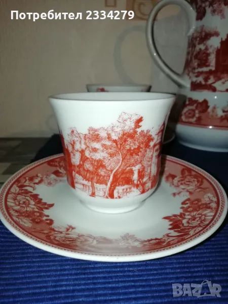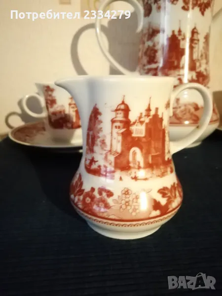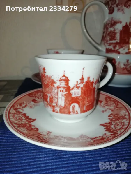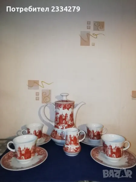Стари немски порцеланан N:1 порцеланов сервиз за кафе или чай състоящ се от голяма кана, каничка за мляко и сметана, 4 чаши и 4 чинийки, всичко е от ,, WINTERLING-MARKTLEUTH M BAVARIA" общо 10 части за 27€. (едната чашка е леко пукната,но се ползва и за това се намаля на 20€); N:2 сосиера немска от същият производител, цена 5€.; N:3 голям съд капак супник немски, цена 7€.