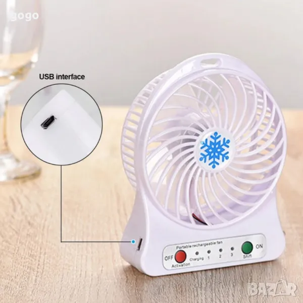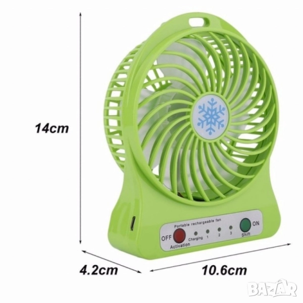 Преносим мини вентилатор за дом или офис, с USB Зареждане → Обява 50395984