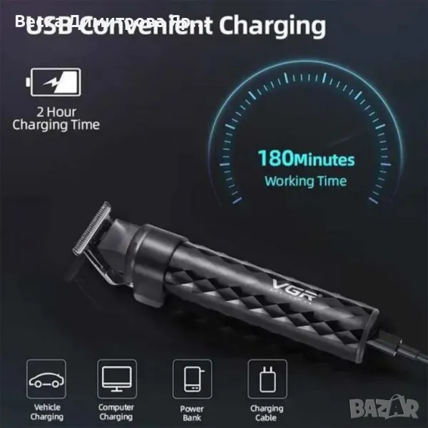 Водоустойчива професионална машинка за подстригване VGR V-170 с метален корпус и USB-C зареждане → Обява 50396010
