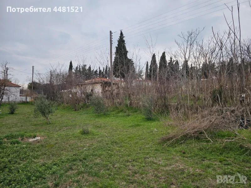 В регулация, равен, с издавано разрешително за строеж на къща 60м2, като има възможност за подновяване на разрешителното за постройка до 200м2 или да се раздели и да се построят повече сгради. Има прекарана вода, ток – до самата граница на имота. В парцела има засадени 30 маслинови дръвчета, круша, 3 нара,