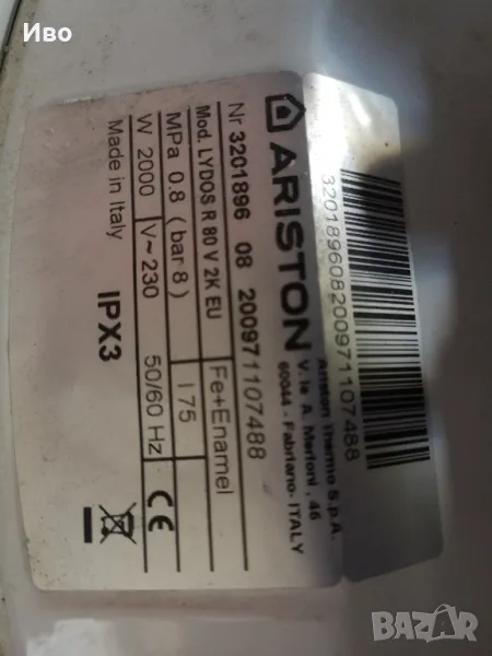 бойлер ariston 80 lt, снимка 1 - Бойлери - 50397001 бойлер ariston 80 lt, снимка 2 - Бойлери - 50397001 бойлер ariston 80 lt, снимка 3 - Бойлери - 50397001 1/3