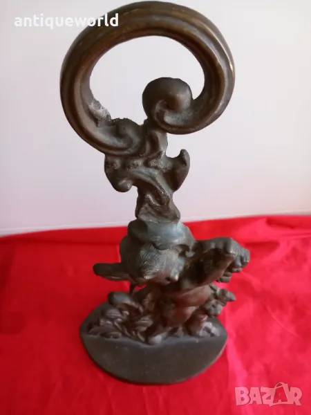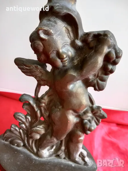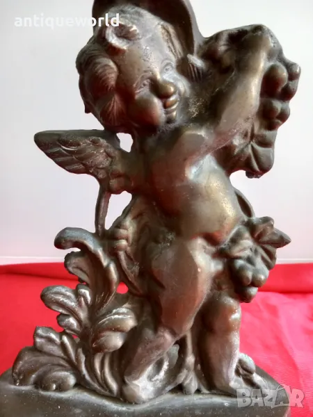 19 Век Много Красив Стар Английски Викториански Масивен Бронзов Стопер за Врата , ХЕРУВИМ , Ангелче. Тегло около 3кг Масивен Бронз!С Много Хубава Патина.