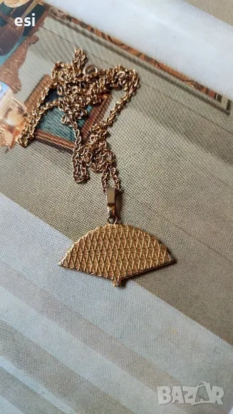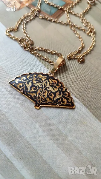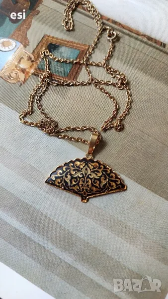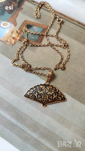 Винтидж колие с висулка Форма на ветрило Дамаска в златист тон Испанска Цена 50 лв