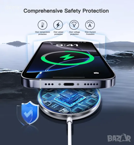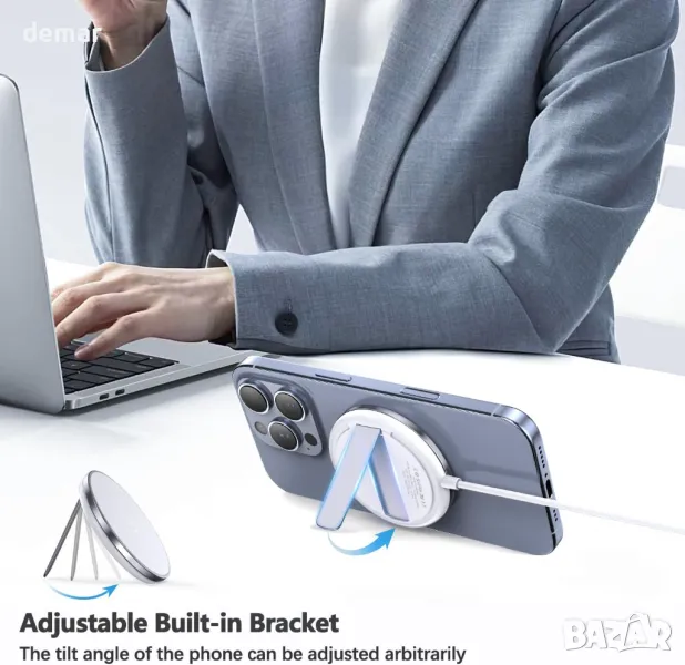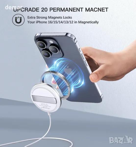 Това магнитно безжично зарядно устройство е проектирано специално за iPhone серии 12 до 16 и съвместими модели AirPods, осигурявайки бързо 15W зареждане със силни вградени магнити за сигурно подравняване. Включва две зарядни устройства със сгъваеми стойки за гледане със свободни ръце по време на зареждане и поддържа бързо зареждане - до 50% за 30 минути. Алуминиевият корпус подобрява разсейването на топлината, а вградените функции за безопасност предпазват от презареждане, прегряване и късо съединение. Тънко, леко и лесно за носене, то е идеално за употреба у дома, в офиса или по време на пътуване.