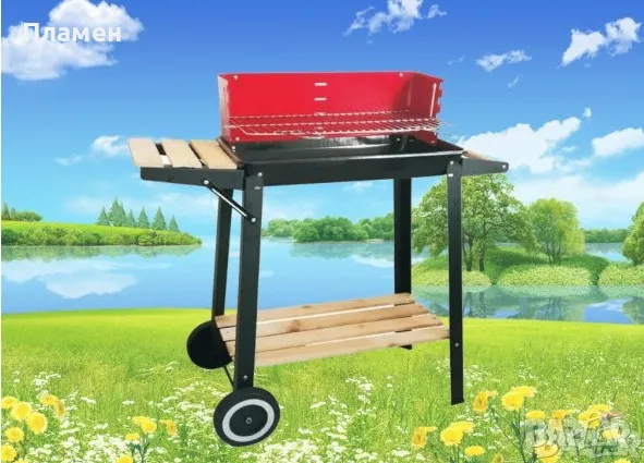 Скара, грил, барбекю на дървени въглища с поставкa дръжка и колелца. 65 лв.