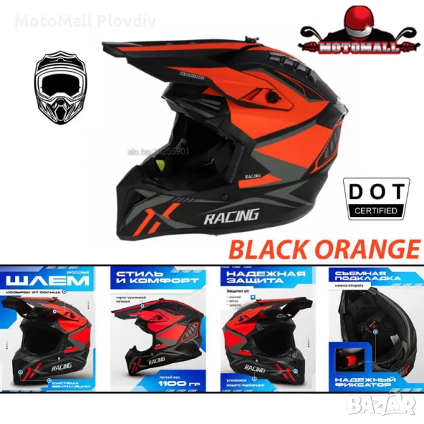 мотокрос каска 127 КРОС в атрактивна комбинация от черно и оранжево – създадена за динамично каране и екстремни условия.