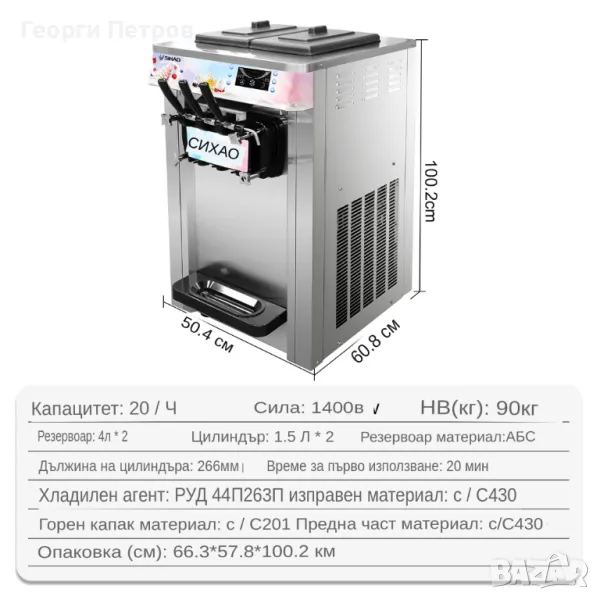 Търговска машина за мек сладолед – 22литра на час, 1400W