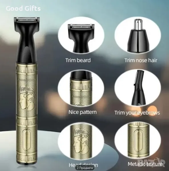 Професионалният тример Gemei GM-3157 комбинира 3 сменяеми глави в един стилен уред – за нос, вежди и брада. С ергономичен метален корпус с елегантна гравюра и остриета от неръждаема стомана, той осигурява безболезнено и точно подстригване. Перфектен както за мъже, така и за жени, благодарение на компактния си размер и лекота при употреба. Работи с USB зареждане, удобен за пътуване и ежедневна грижа.