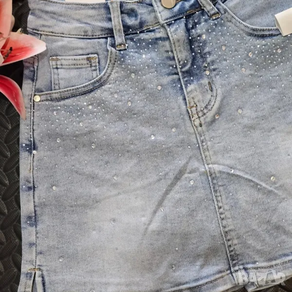 Пола- панталон 45.00лв Мек и еластичен деним с апликация от камъчета Налични размери 25,26 27,28,29,30