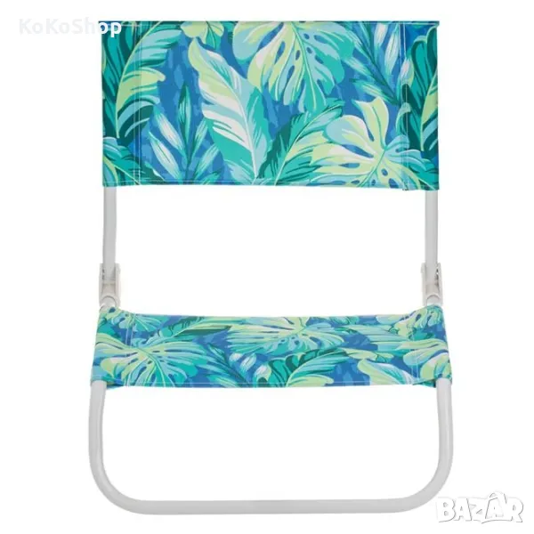 Сгъваем стол с атрактивен морски десен – идеален за плаж, градина, пикник или къмпинг. Комбинира стабилна метална конструкция с текстилна седалка, в свежи цветове. Изключително лек и компактен – лесен за носене и съхранение.