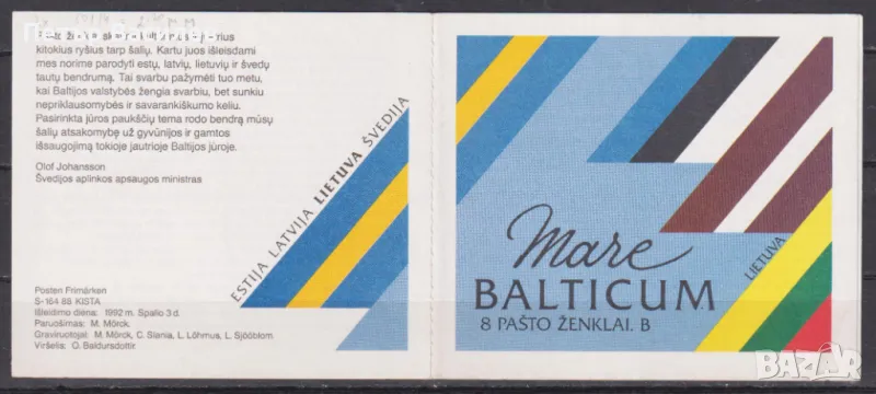 Чист блок (х 2) в карнетка Фауна Птици 1992 от Литва.