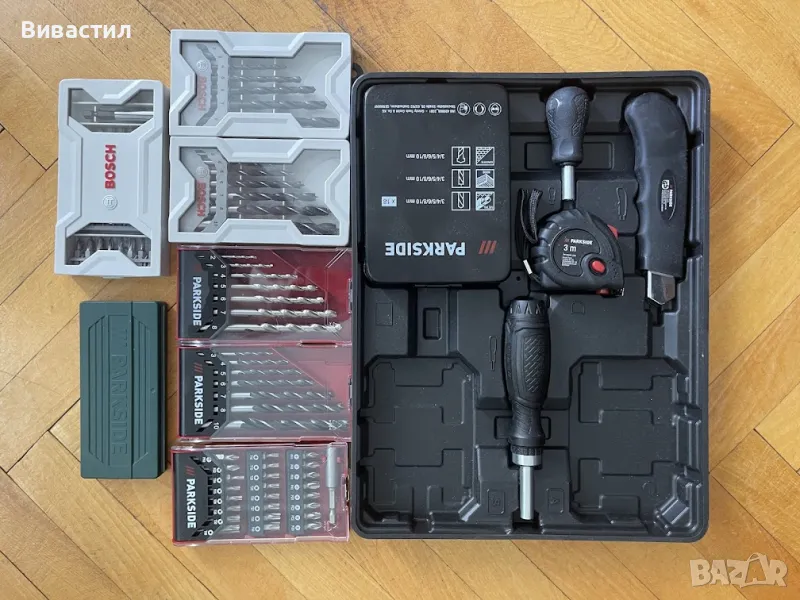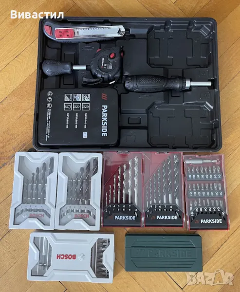 Аксесоари от машини Parkside, нови куфари,антивибрационни дръжки,предпазители шайби,бургии,шила,накр → Обява 50402495