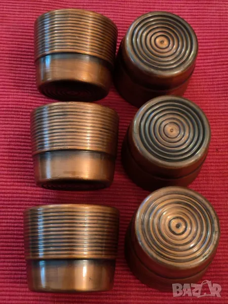 Стари подстакани ГДР, медни, бакърени, темперирани чаши Йена глас. Височина 9 см, диаметър 7 см, забележка липсва една чаша. Еконт, Спиди, лично предаване.