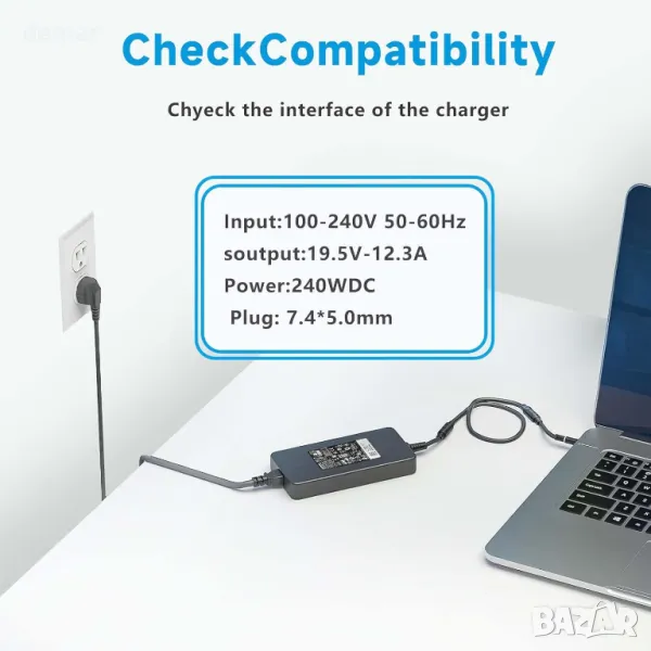 Мощно 240W зарядно устройство, съвместимо с широка гама лаптопи Dell Alienware, включително сериите 15, 17, Area-51M, M15, M16, M17, X15, X16, X17, както и моделите G3, G5, G7 и Precision Workstation. Проектирано за надеждна работа с конектор 7,4 мм x 5,0 мм и изход 19,5 V–12,3 A, то ви позволява да захранвате устройството си и да зареждате батерията едновременно. Идеално като резервен адаптер за дома, офиса или пътуване, за да избегнете постоянно изключване от контакта.