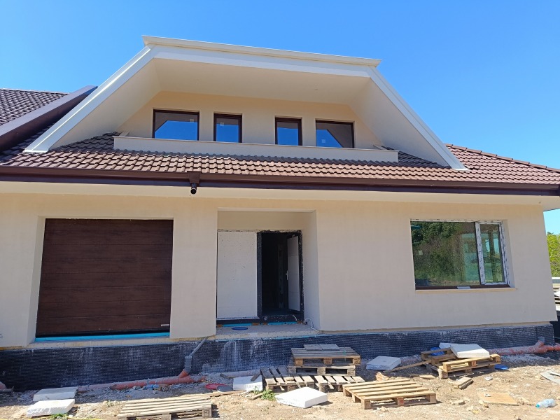 Къщата е новопостроена, на два етажа с РЗП 212 кв.м., с гараж и 340 кв.м. собствен двор. Намира се в близост до стария автопазар по ул. Трети път в местност Гаази баба . Разпределението е на първи етаж: антре, голяма дневна с кухня - 50 кв.м., сан. Възел 4 кв.м., килер 6 кв.м. ; втори етаж: три спални всяка около 17 кв.м., с излаз на тераса, сан.възел 7 кв.м. и дрешник 6 кв.м. Имотът ще бъде завършен по БДС, с висококачествена дограма REHAU, с гаражна врата Horman и положено подово отопление. Окончателно завършване Октомври 2025 г. С възможност за ипотечен кредит. За повече информация и оглед, свържете се с нас на посочените телефони.
