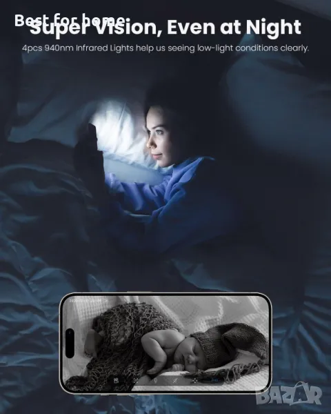 [Ясно нощно виждане]: Благодарение на усъвършенстваната си инфрачервена технология, тази малка камера, захранвана от батерии, може да осигури изключително ясни изображения дори на тъмно. Ден или нощ, винаги ще получавате ясни и детайлни изображения.