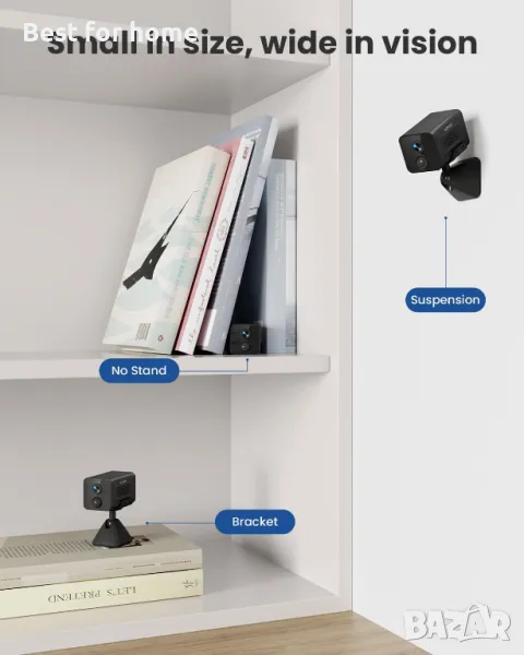 [Ниска инсталация]: Благодарение на компактния си размер, тази безжична вътрешна камера може да се инсталира незабележимо никъде. Тя е идеална за наблюдение на деца, възрастни хора и вашите близки.