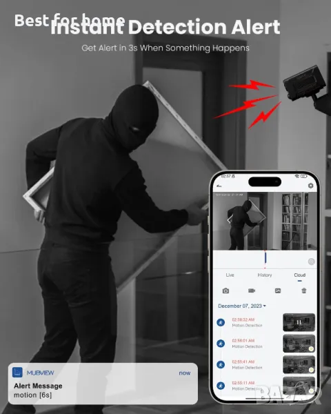 [Защитете поверителността си]: MUBVIEW wifi камерата предлага безплатна 7-дневна циклична услуга за запис в облака, но можете да записвате и на SD карта. Записаните видеоклипове са защитени от уникална технология за криптиране и могат да бъдат гледани само от вас и оторизирани лица.