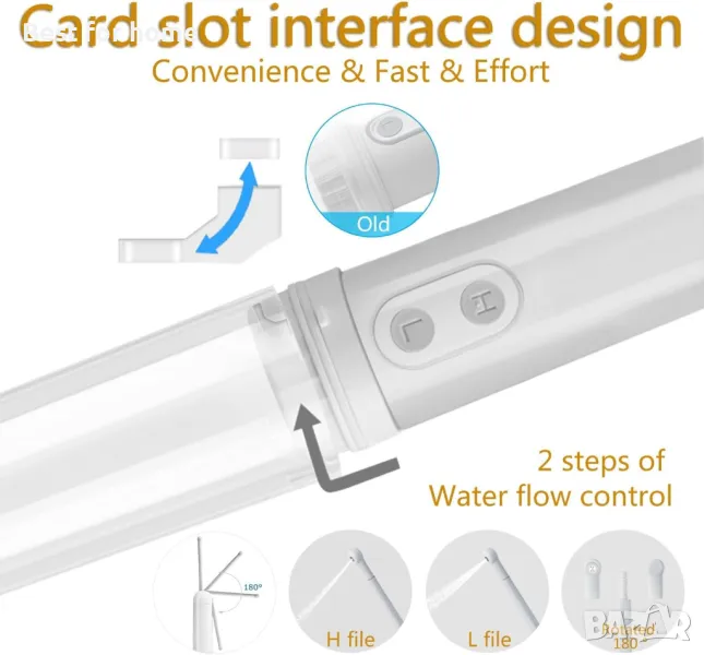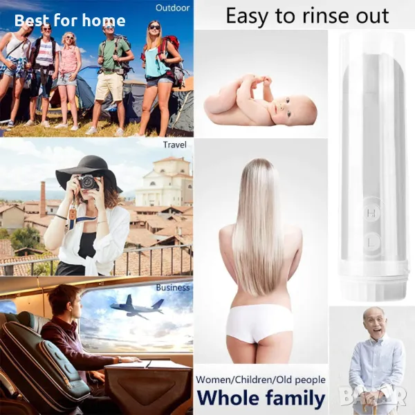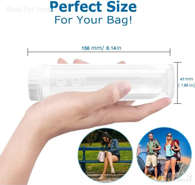 Лесен за употреба и носене: Отстранете капака и го напълнете с вода, натиснете бутона H / L, за да започнете да работите според вашите нужди; размерът Ø47×156 мм го прави лесно побираем във всяка раница, куфарче, портмоне, чанта или жабка, когато не се използва.