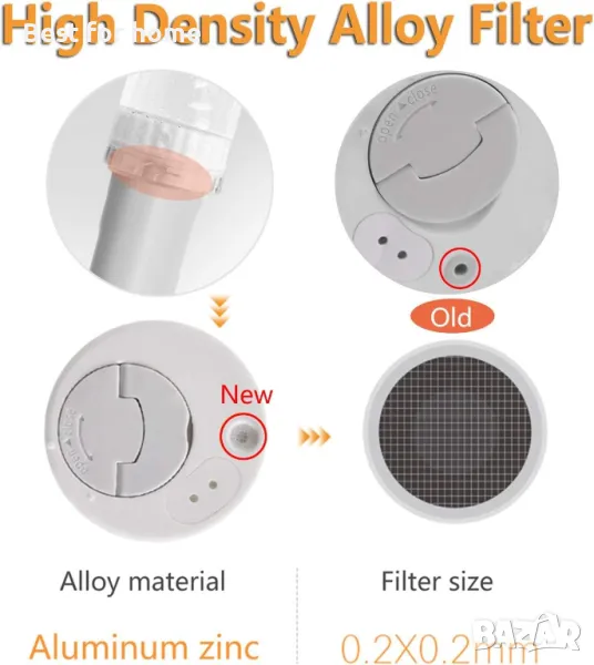 Ново подобрение: Новото автоматично декомпресионно фолио решава проблема с нестабилността на водата, новият филтър от алуминиева сплав може ефективно да предотврати запушването на изхода, а нивото на водоустойчивост IPX6 ви позволява да се миете директно под вода, всичко това е само за по-добро осигуряване на качеството.