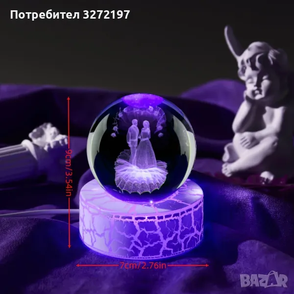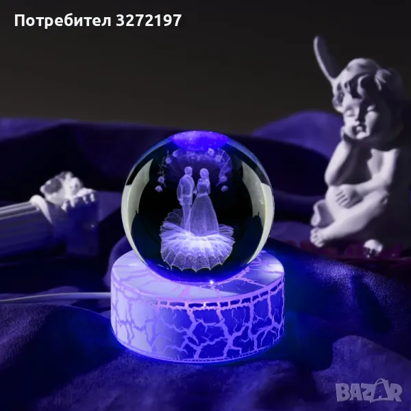 - Светеща нощна лампа с кристална топка