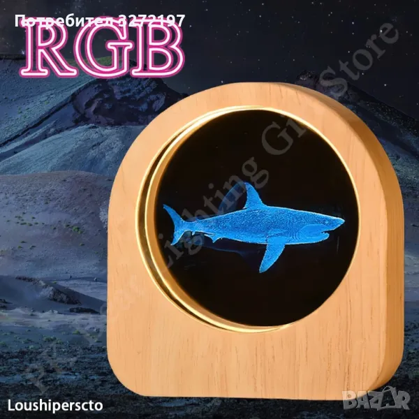 LED Светеща кристална топка/лампа, 3D сензорна-Акула