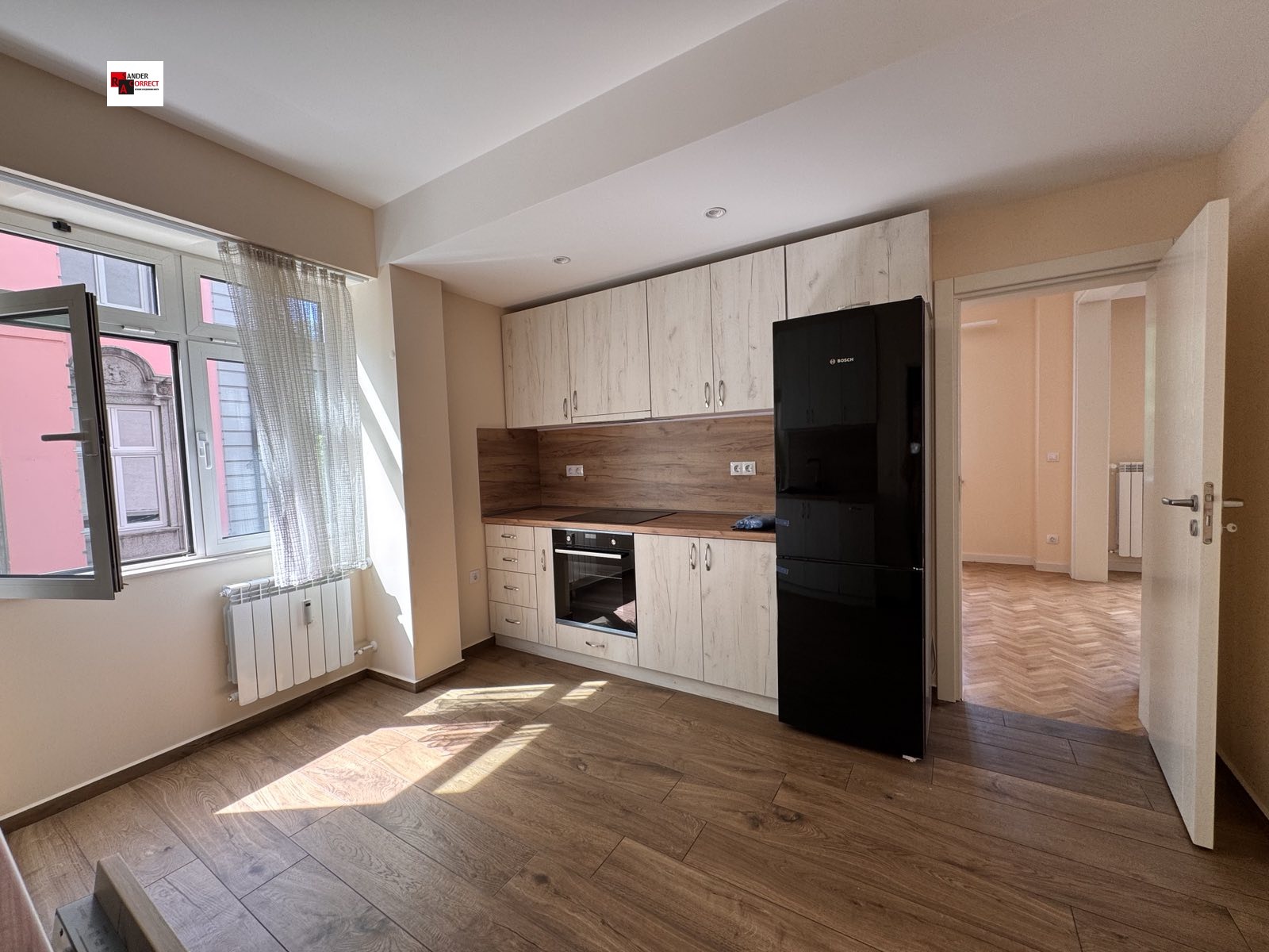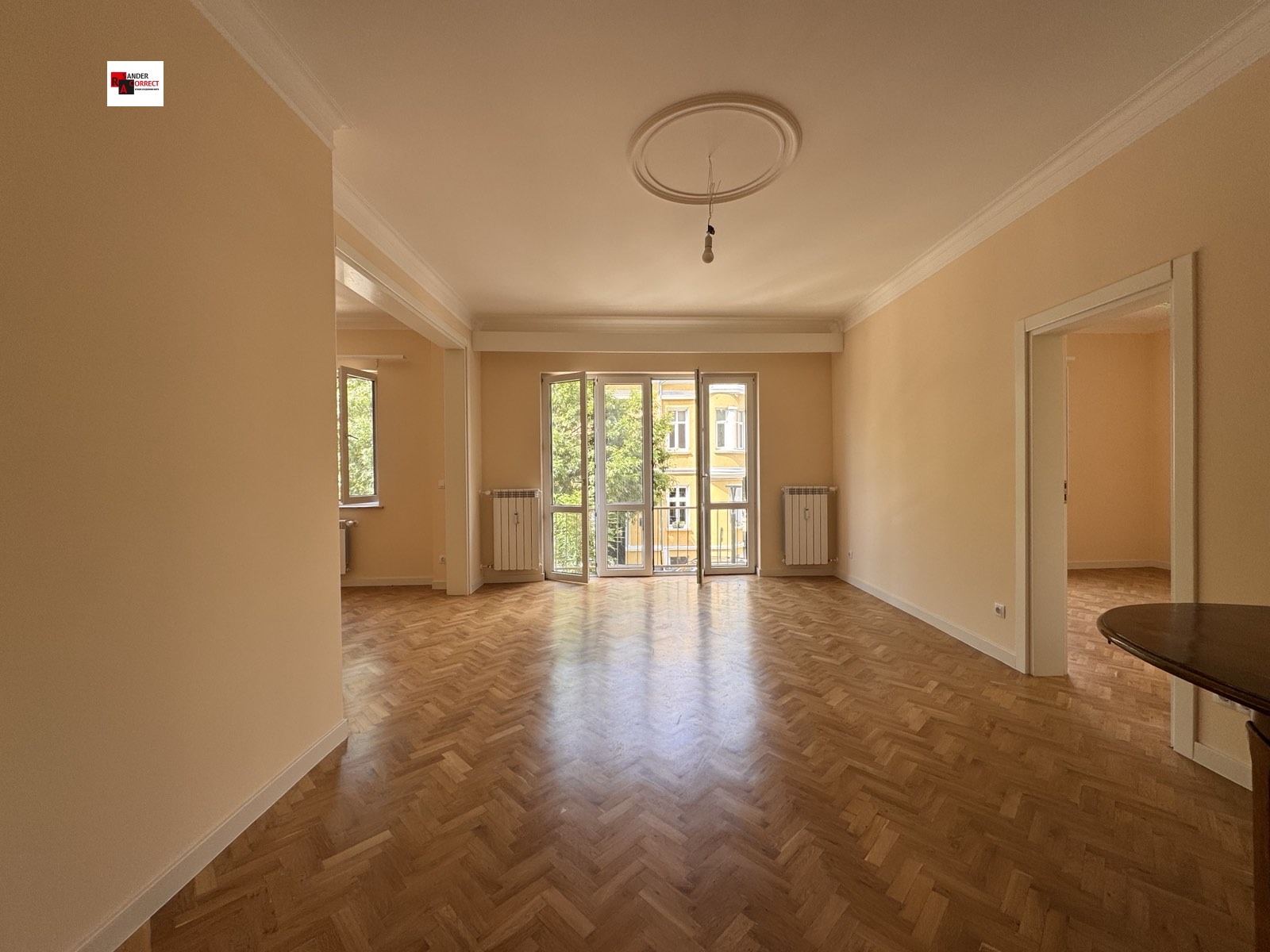 Апартаментът е след извършен цялостен ремонт с най-високо качество, подменени инсталации, ВиК, отделно окабеляване на всички помещения, изцяло реставриран естествен паркет, гранитогрес Marazzi, латекс Oikos, дограма Salamander, входна врата Dierre и нови интериорни врати. Разпределение: входно антре с г-образен коридор, просторен хол с голяма трапезария, с преход към отделно голямо кухненско помещение, обзаведено с поръчкова кухня. Всички уреди са чисто нови, като има и вградена миялна машина. С достъп от кухнята се намира мокро помещение с пералня. В апартамента има луксозна и фунционална баня с тоалетна, втора тоалетна и вграден бойлер. Три отделни спални: една преходна от хола и две самостоятелни спални, чието изложение е към ул. Васил Априлов. Изградена СОТ инсталация. Апартаментът се предлага необзаведен, като бъдещият наемател може да го обзаведе в зависимост от индивидуалните си предпочитания, вкус и цели - било то за дом, офис или кантора. Всички помещения са просторни, а архитектурата - впечатляваща. Ако желаете да живеете или да уражнявате своята професия на това колоритно и харизматично място, свържете се с нас. Телефон за контакт: 0892014504