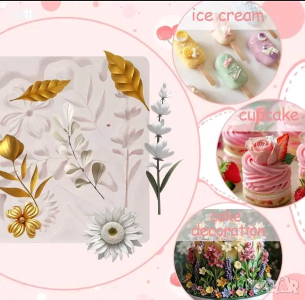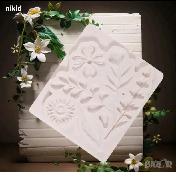Цвете цветя клонка клонки листо листа силиконов молд форма фондан шоколад гипс декор → Обява 50406636