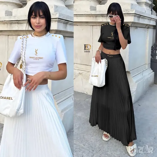дамски комплекти тениска/кроп и дълга пола солей yves saint laurent → Обява 50406649
