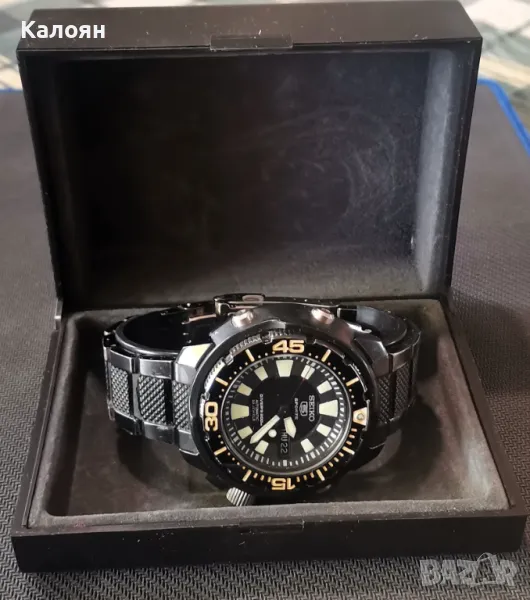 Продавам работещ и все по-рядко срещан (колекционерски) часовник Seiko 5 Sports 7S38-02S0 Scuba Divers 200m. Часовника е със следи от употреба по каишката видими на снимките. Продава се с пълната си окомплектовка и документация.