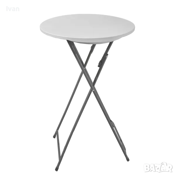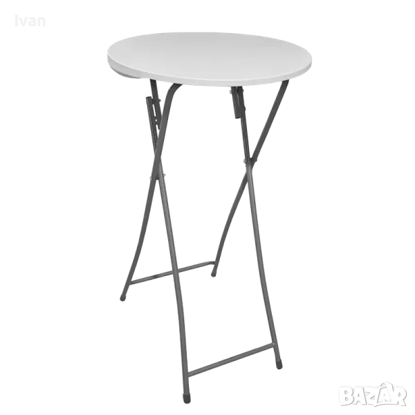 Сгъваема бар маса, идеална за провеждане на събития, коктейли, идеална за градини и търговски площи. С кръгъл плот и подходяща височина за използване в изправено положение или с бар столове, тя е съчетание от удобство и стабилност.