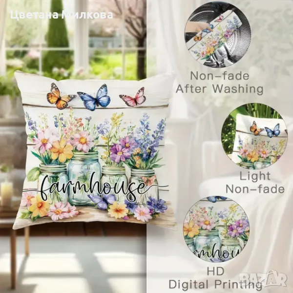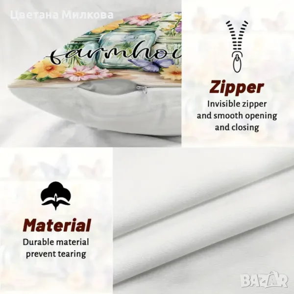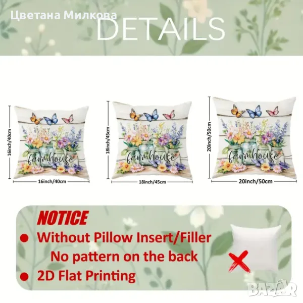 Размери 45/45 см., със скрити ципове за лесно обличане ва възглавниците!