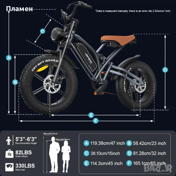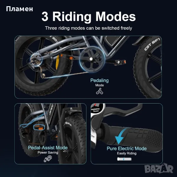 Ново!! Електрически велосипед Jansno X50 750W 48V/17Ah!! 45 км.ч.