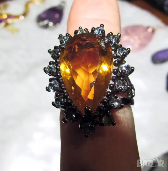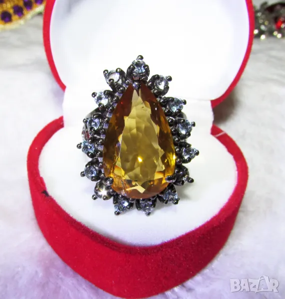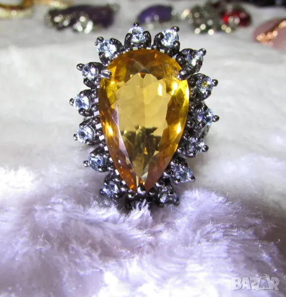 925 сребърен пръстен с натурален цитрин 18 карата, подходящ за подарък → Обява 50409566
