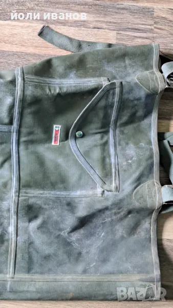 Гащеризон качествен за риболов,мека гумена материя с подплата памучна отвътре,широк в кръста и ханша 60 см,44 номер ботушите,за висок мъж,до чатала 80 см,до горе 140 см,ластични презрамки,гумен джоб отпред