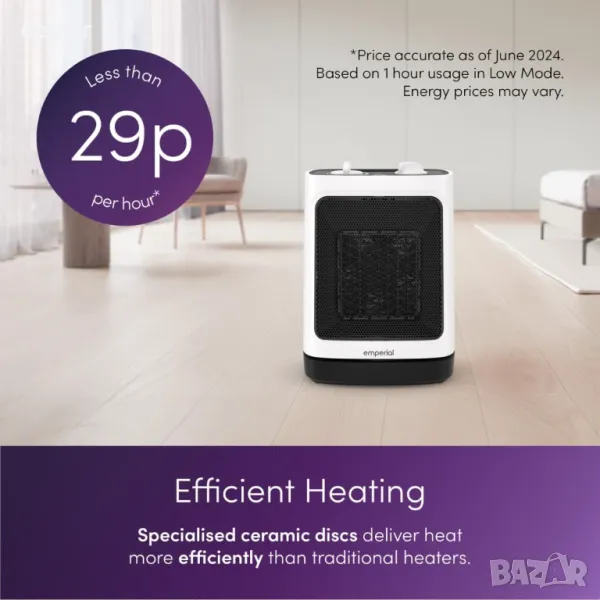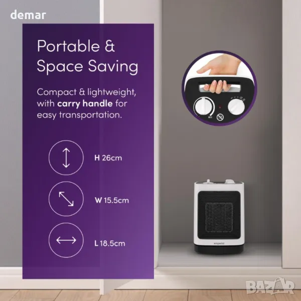 Emperial 2000W керамичен мини вентилаторен нагревател с осцилация, 2 степени