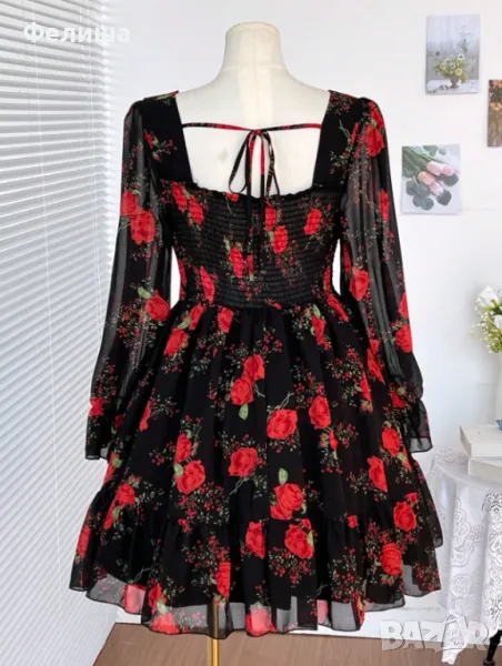 Нова! Изумително красива Романтично Нежна Рокля с Червени Рози