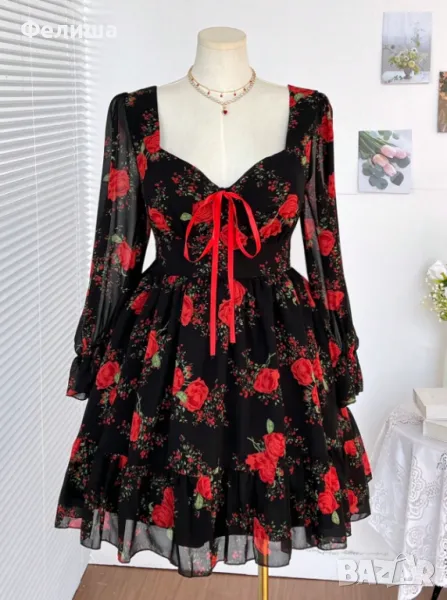 Удивително Красива Романтично Нежна Рокля с Червени Рози → Обява 50410883