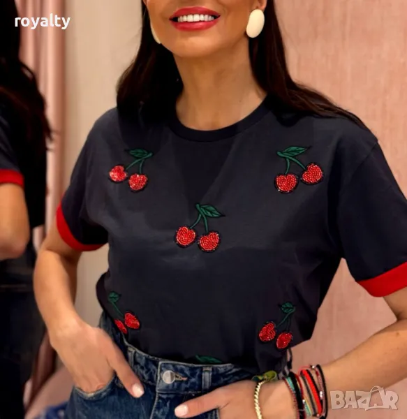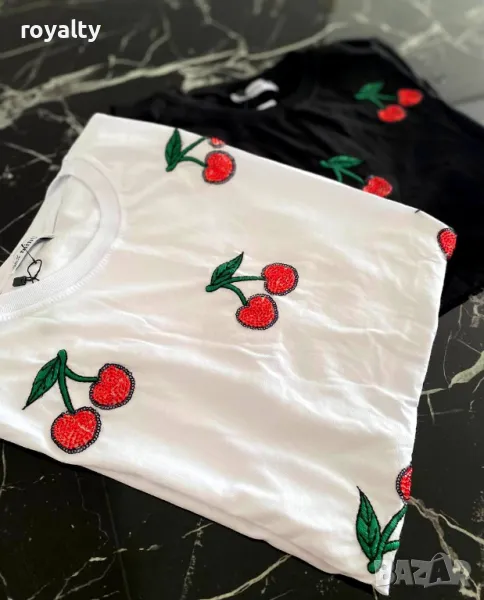 Памучни дамски тениски с черешки Различни цветове → Обява 50411642