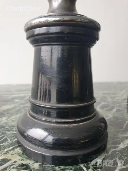 Фигурите са монтирани върху стари струговани дървени постаменти.