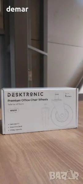 Колелца Desktronic – Комплект от 5 – Гумени резервни колелца за мебели и офис столове, бели