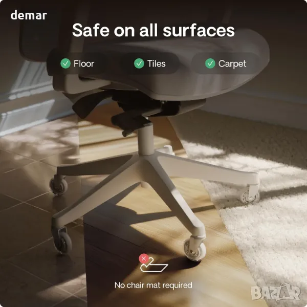 Този комплект от пет гумени колелца с размер 11x22 мм е проектиран за плавно и тихо движение върху паркет, ламинат, килим, дърво, винил и плочки, без да причинява драскотини - елиминирайки нуждата от подложки за столове. Изработени от издръжлива стомана и полиуретан, те издържат до 250 кг и са подходящи за повечето офис и геймърски столове, както и за различни мебели, макар че не са съвместими с 1KEA и някои маркови модели (проверете размера преди покупка). Монтажът е бърз и лесен, предлагайки стабилно и удобно подобрение за ежедневна употреба.