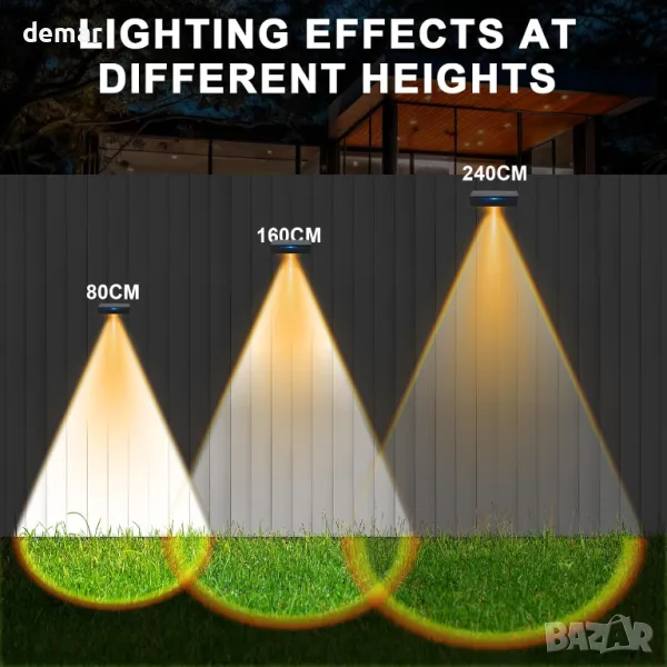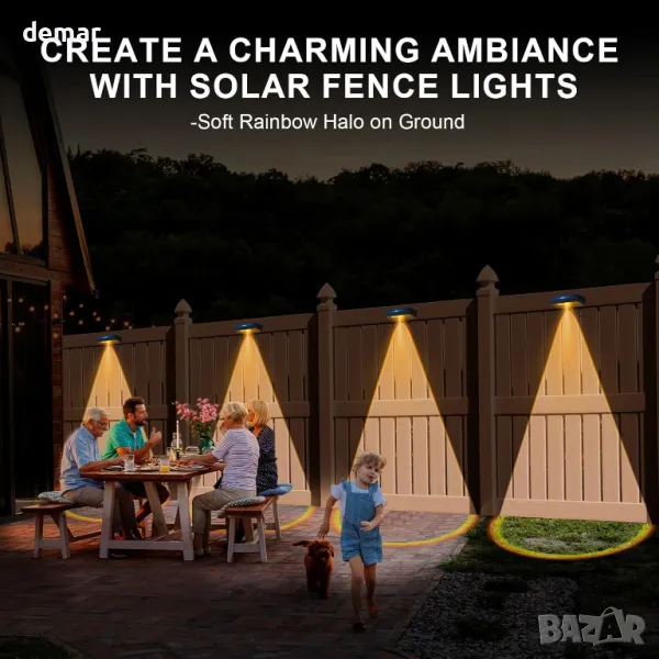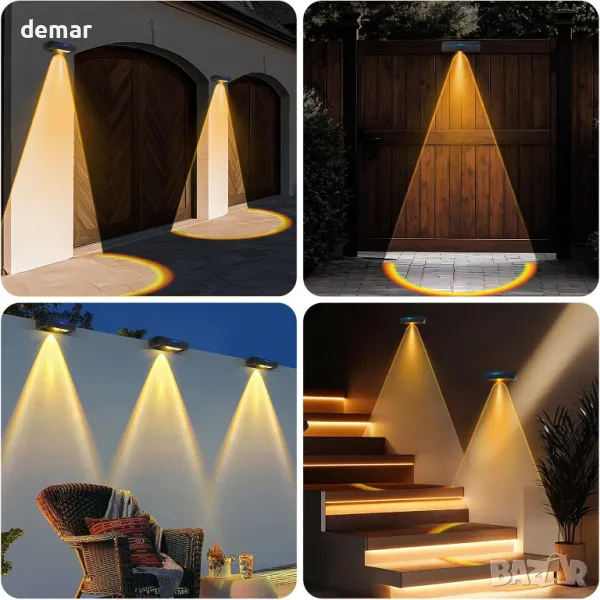 Тези соларни оградни лампи се отличават с уникален ефект на дъгов ореол, използващ светодиоди, фокусирани върху лещи, за ярко, персонализирано осветление, с три регулируеми цветови режима (топло, естествено, студено бяло), подходящи за всяко настроение или повод. Напълно захранвани от слънчева енергия с батерия с висок капацитет, те предлагат дълготрайно и безплатно осветление след 6–8 часа слънчева светлина. Създадени да издържат на сурови метеорологични условия с издръжлив, водоустойчив дизайн, те се включват автоматично привечер и се изключват призори. Лесни за монтаж за по-малко от две минути с помощта на лепило или винтове, те са идеални за огради, градини, вътрешни дворове или входове, съчетавайки стил и функционалност с минимални усилия.