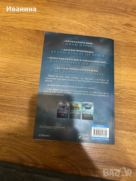 Прокълната съм. Имам дарба. Аз съм чудовище. Аз съм повече от човешко същество. Докосването ми е смъртоносно. Докосването ми е сила. Аз съм тяхното оръжие. И ще отвърна на удара.