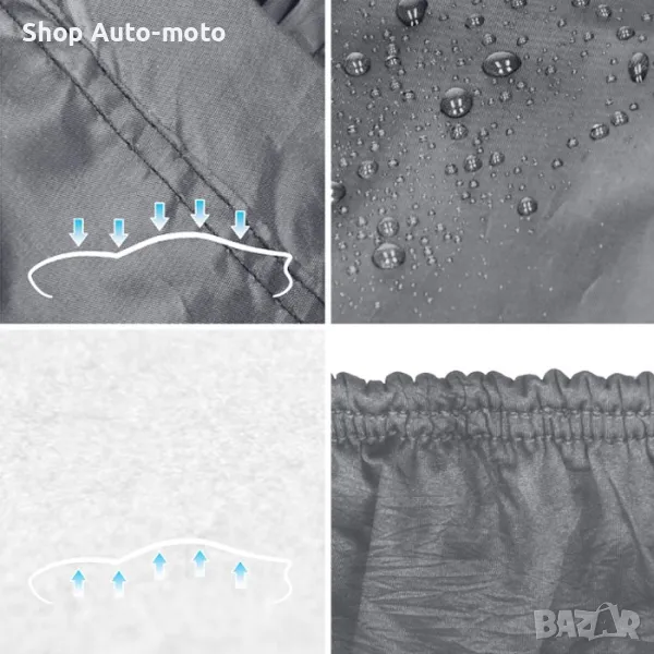 Изработено от водоустойчива и UV-устойчива материя, предпазваща автомобила от дъжд, сняг, прах, слънце и надрасквания.